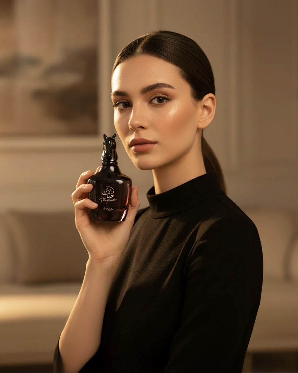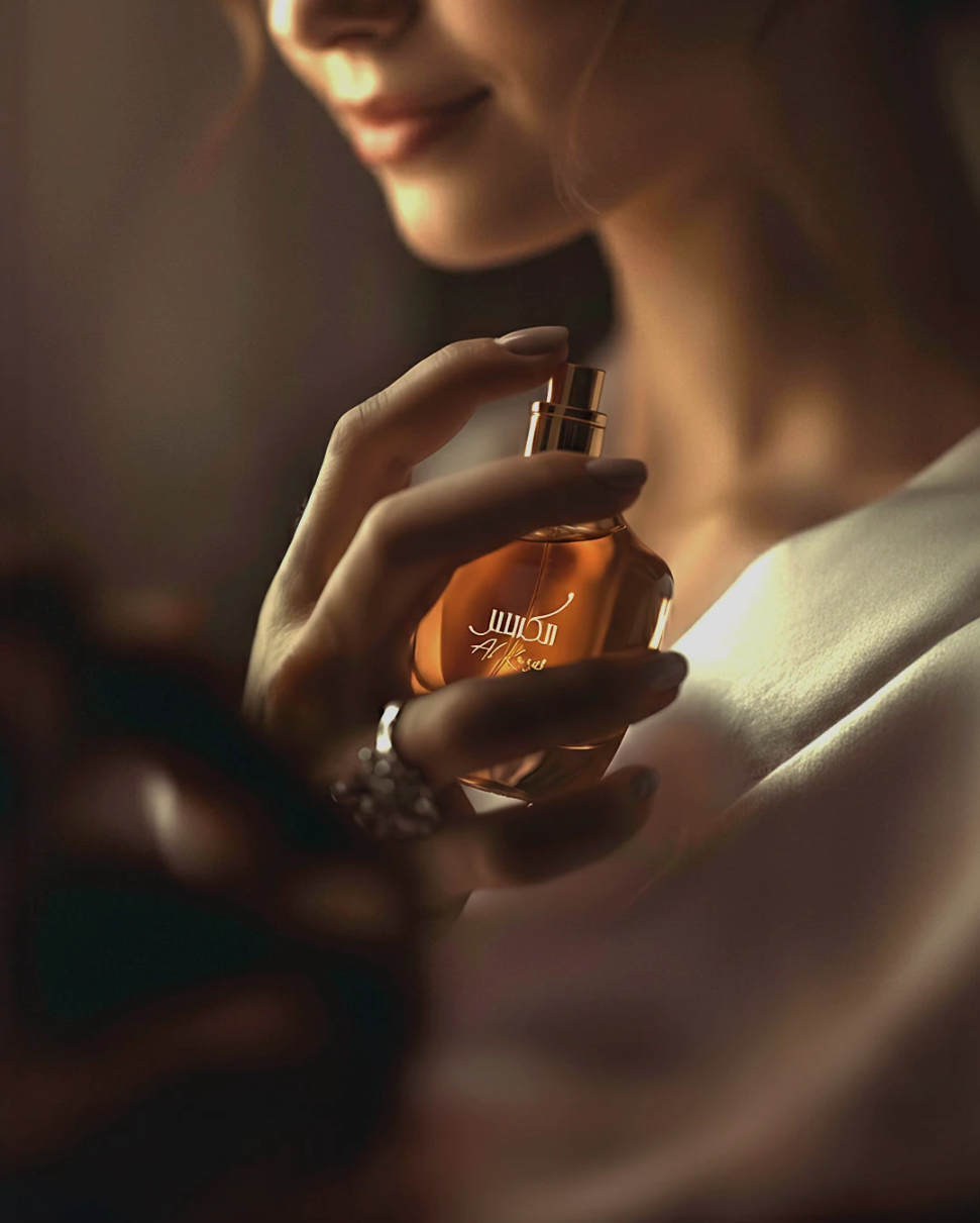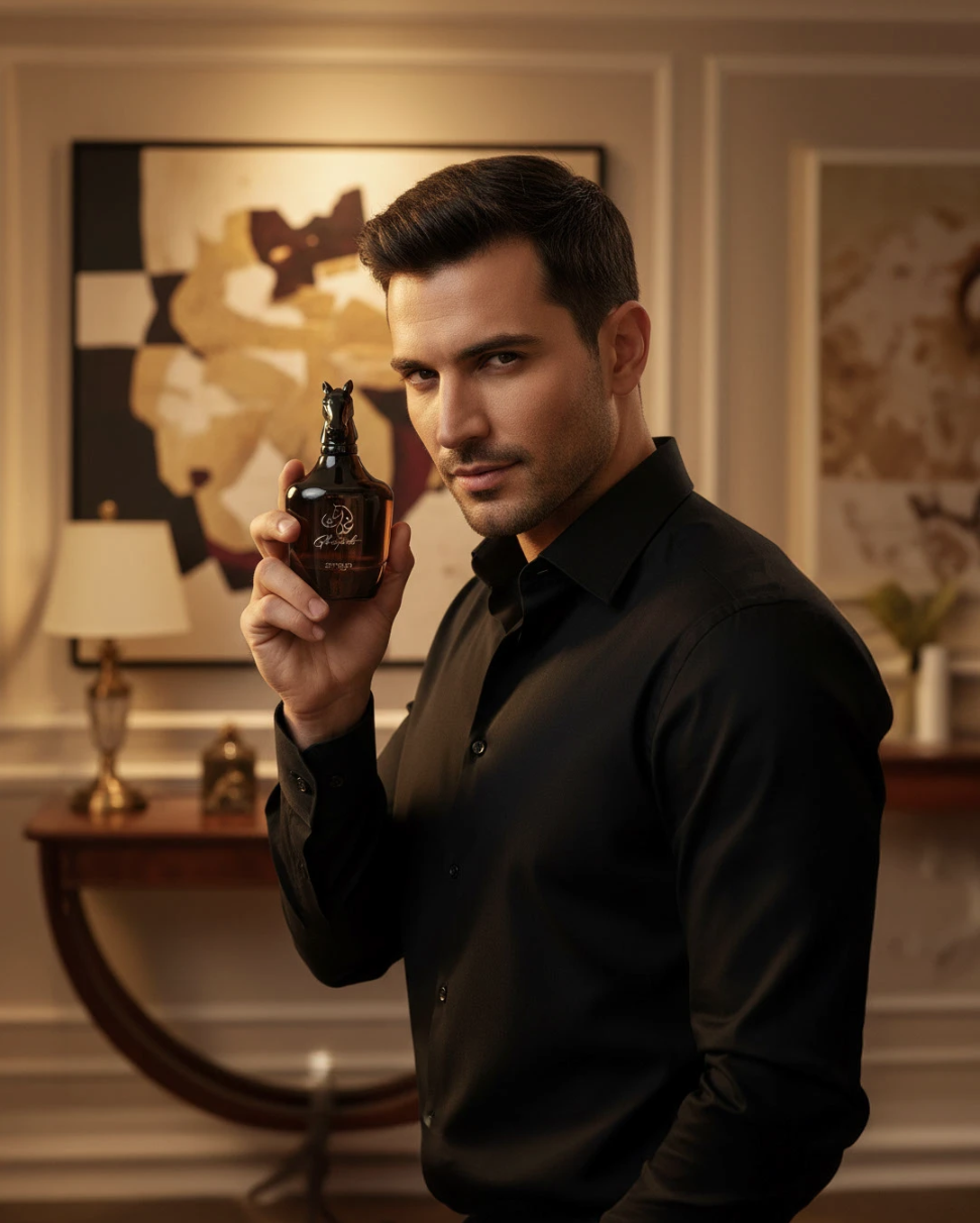We will emphasize a luxurious AI-generated perfume visual series, blending artistic direction and elegant lighting to express sophistication, warmth, and timeless beauty.
